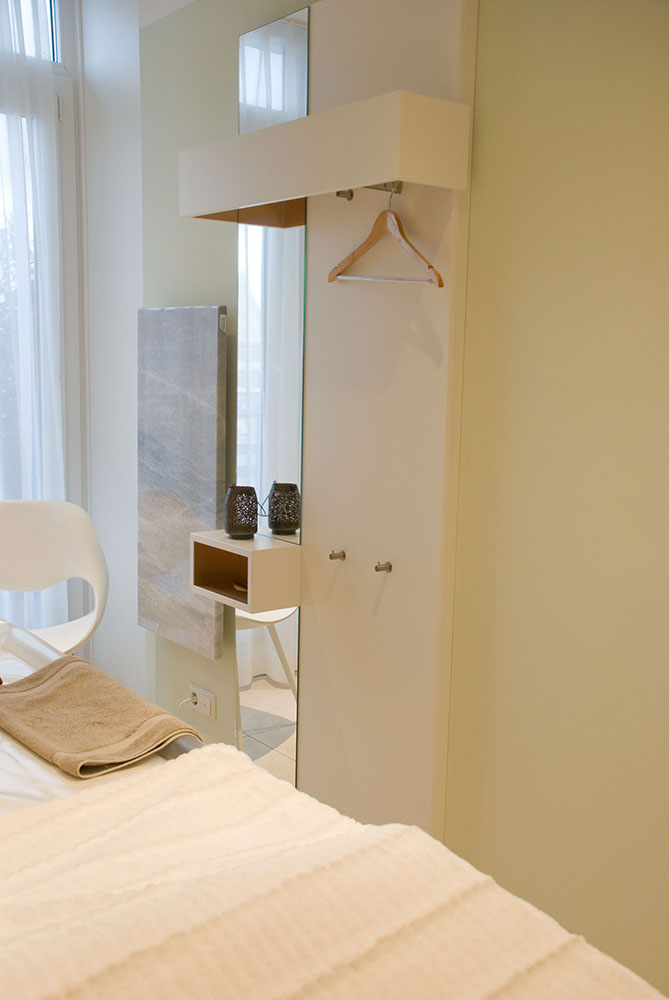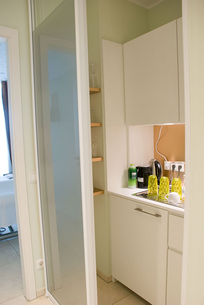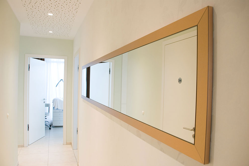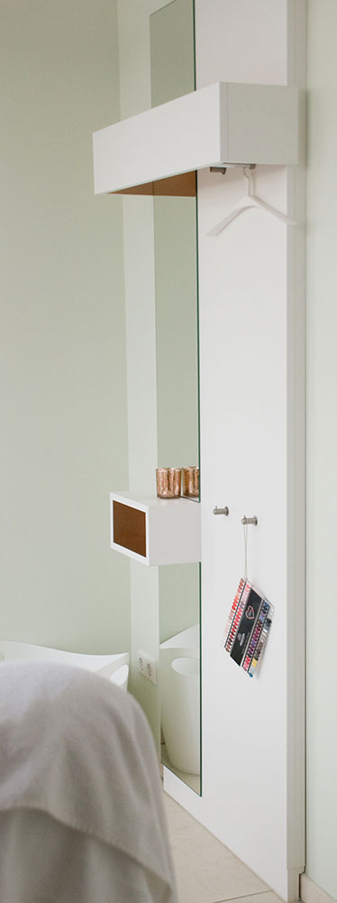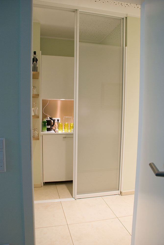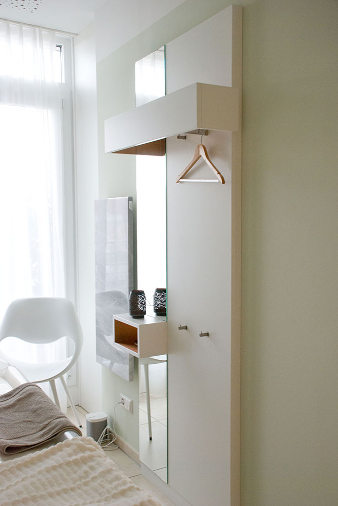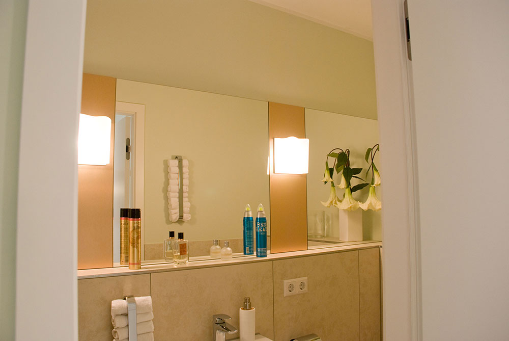 Schönheitsfarm über den Dächern von Ludwigsburg, gehobene Ausstattung für ein besonderes Erholungsgefühl. Ausstattung der Behandlungsräume, Bäder, des Empfangs- und Saunabereiches, Kombination weiß mit Kupfer, Beleuchtung bewusst auf Kupfer um einen sehr warmen Lichtton zu erhalten, viele durchdachte Details in Zusammenarbeit mit der Architektin.